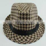 HOT Sale Man Checks Acrylic or Wool Ribbon Decorated Cheap Fedora Hat