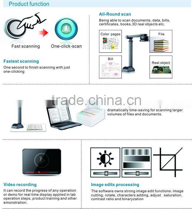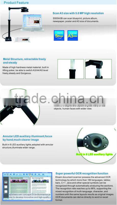 Adopt high quality 5.0 mega HD CMOS with max scanning size A3 size.