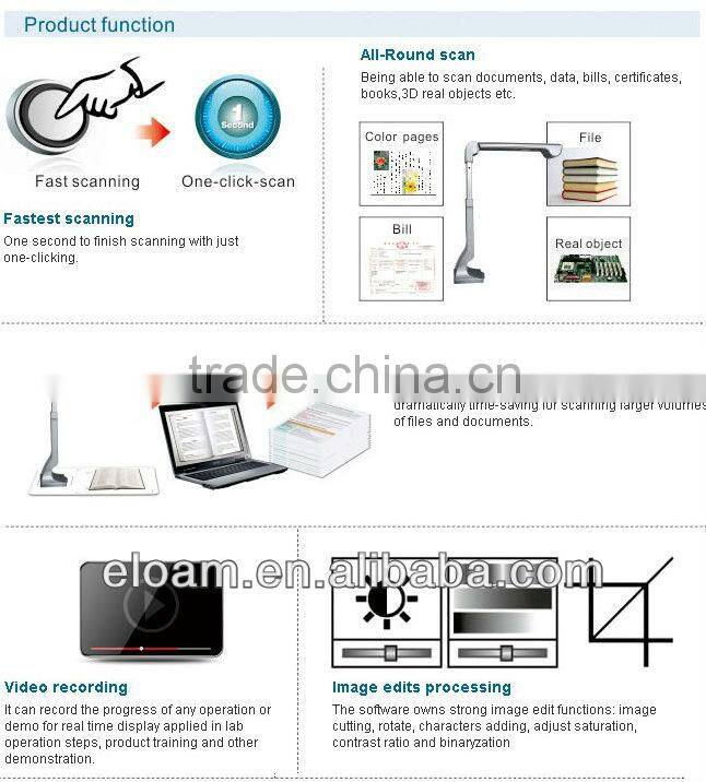 Eloam High speed portable document scanner mainly used in three industries: Education Industries,Window industries , enterprises and personnel scanning use