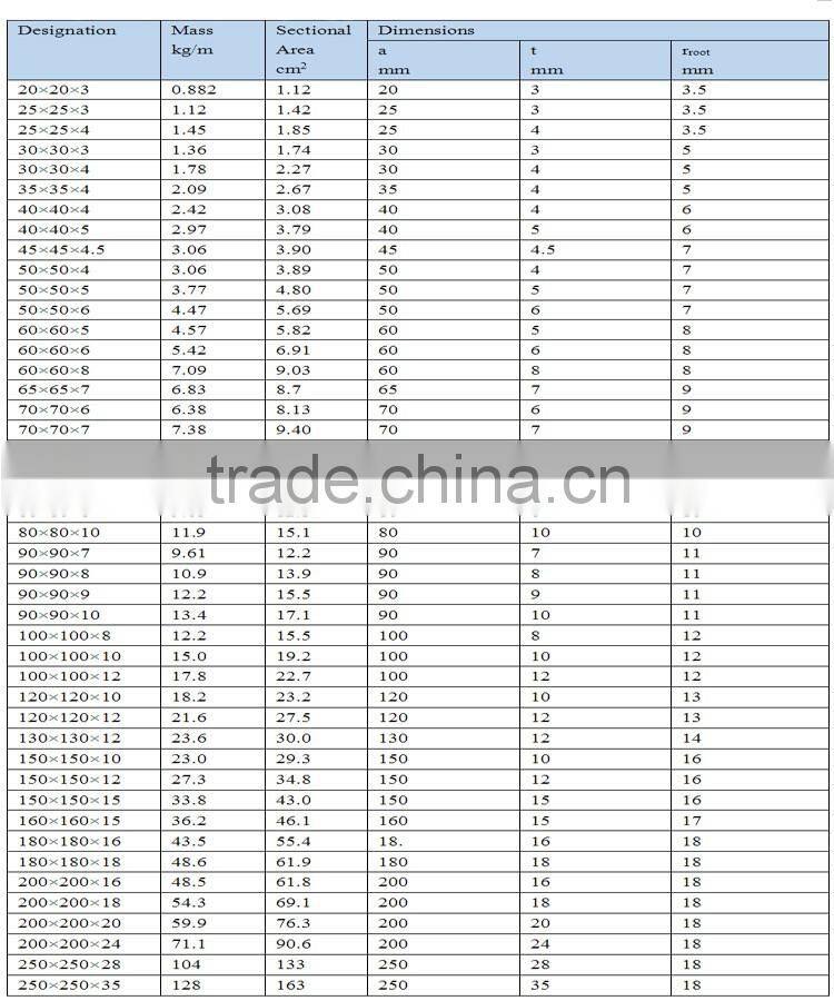 • A full selection of angle dimensions, from 20×20×3mm to 250×250×35mm
