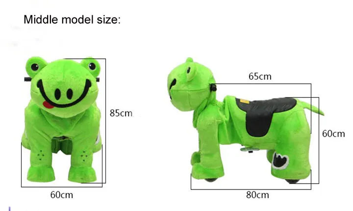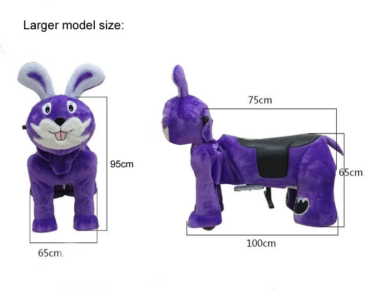 Plush electrical animal toy car is a electric toy cars with all kinds of animal for kids for shopping malls, game centers, amusement park and play ground and so on. It can walk like a real animal and it walks with music. It has two kinds of system: coin operated kids’animals toy car and non coin operated toy car.