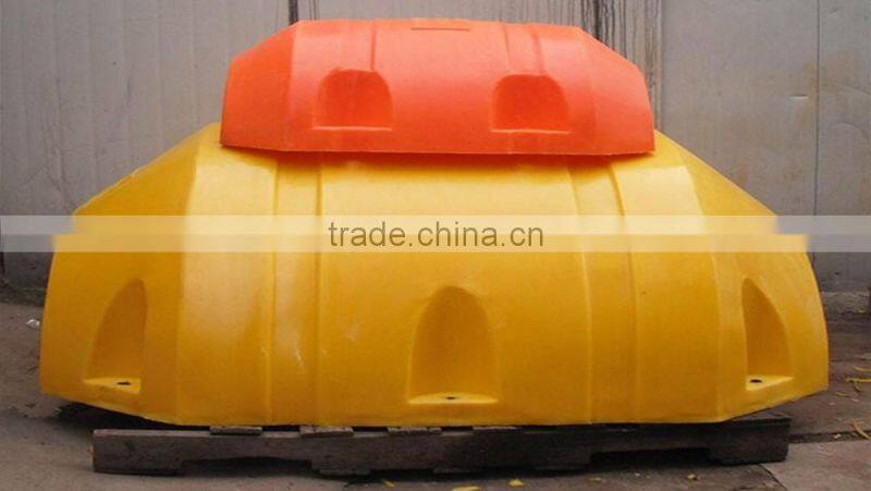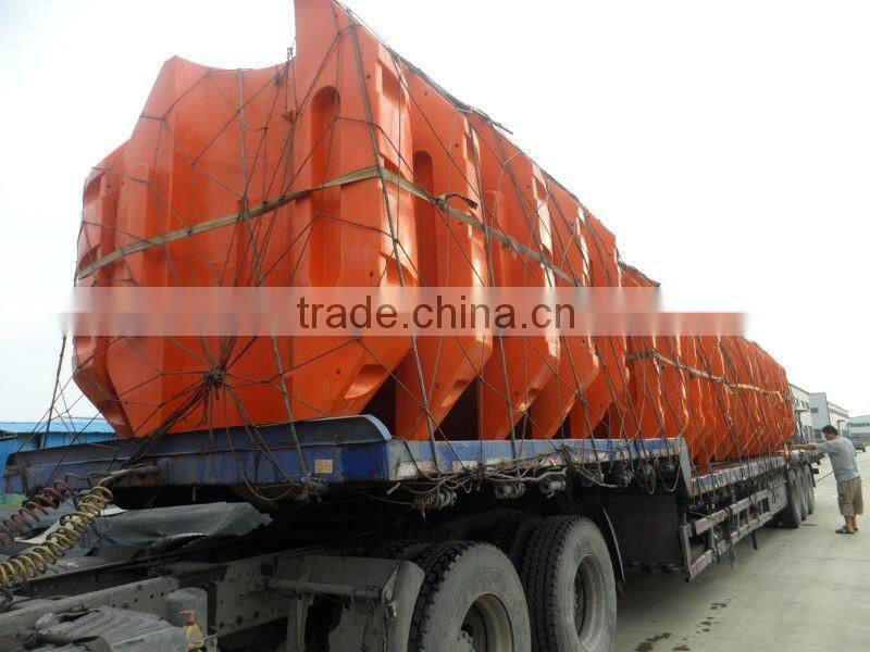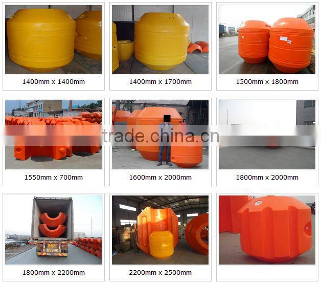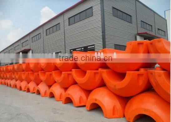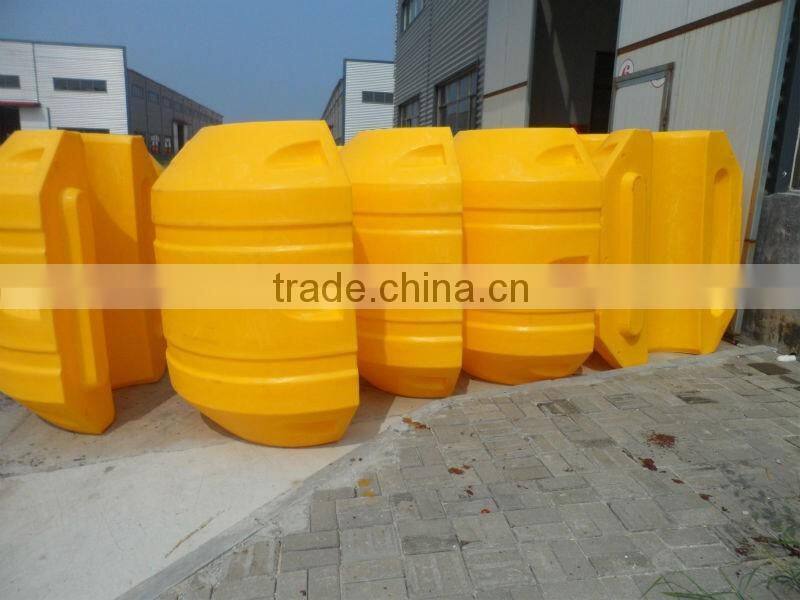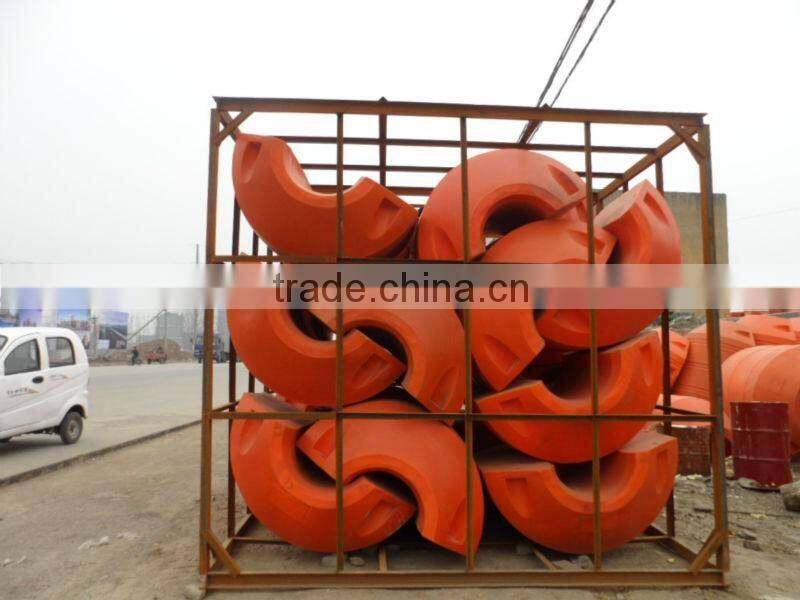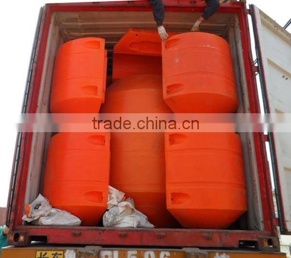 Polyethylene floater is currently popular floating material of dredger pipeline.It has various features,such as small volume,light weight,big buoyancy,wind resistance,aging resistance,long service life,etc.We mainly use medium density polyethylene material and high density polyethylene material.The hull of medium density polyethylene floater with excellent flexibility is filled with polyurethane foam.Its surface is smooth and wear-resisting.