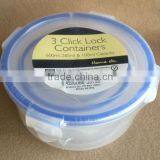 Set of 3 Plastic Clip Lock Storage Containers Round TG12172