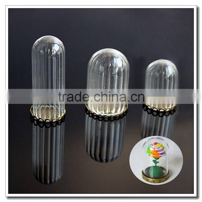 vintage brass bronze glass tube bottle dome pendant charm settings jewelry findings supplies{]hollow Clear Glass Cover with Cap