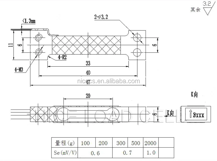 Capacity:100g 200g 300g 500g 750g 2000g load cells