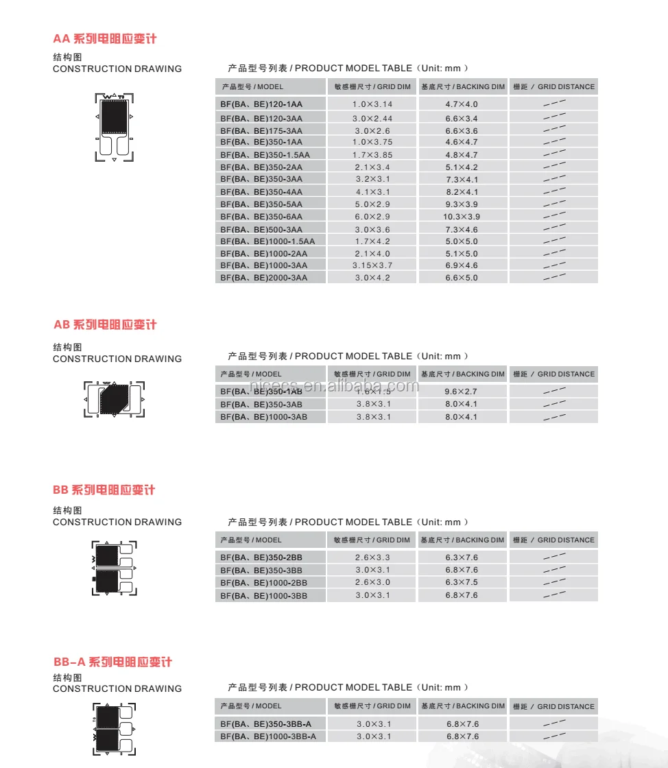 AA starin gage is a standard and most widely used model, using phenolices backing as base material, fully encapsulated to achieve high quality. The excellent heat-resistance and wide temperature range ensures nice performace in precision stress analysis.