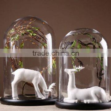 hot sale clear glass bell jar dome with wooden base in many size |