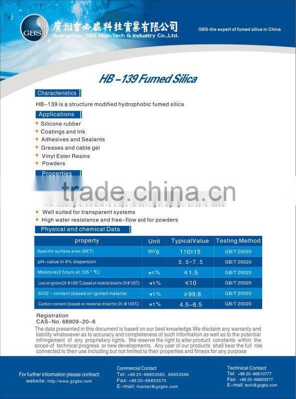 Effect:With highly transparent and reinforcement effects, fumed silica is easily dispersed in HTV silicone rubber.
