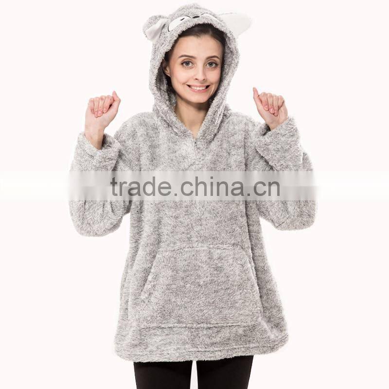 2016 New Snuggle Fleece Embroided Pullover Sweatshirt Plus Size Animal Hoodies Sweatshirt With Ears and Hood