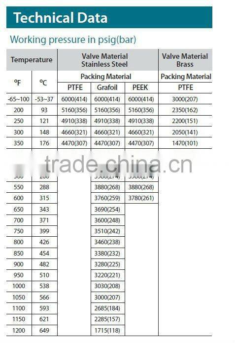 1.Working pressures up to 6000 psig (413 bar)