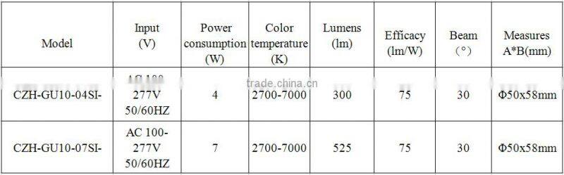 1.S seriesGU10 LED lamps are available in a range of 4W,7W,small and delicate shape,which can replace traditionhalogen lamps,easy to install,dimmable and non-dimmable are available.
