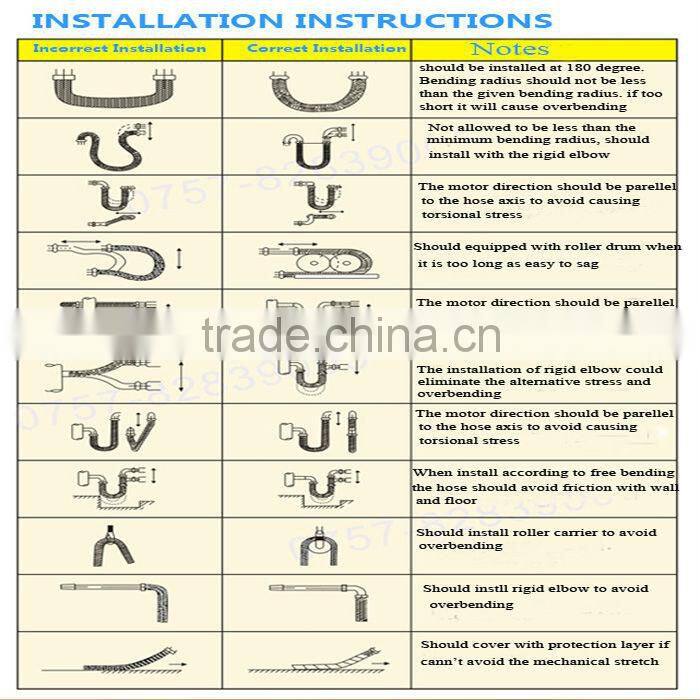 The repetitive bending of a hose to a radius smaller than the radius listed in the specification tables for corrugated hose will result in early hose will result in early hose failure. Always provide sufficient length to prevent overbending and to eliminate strain on the hose.
