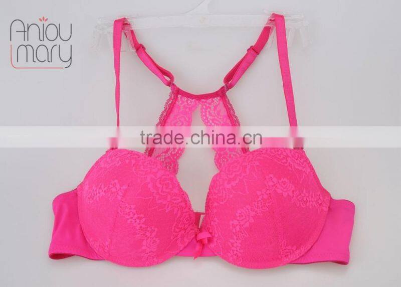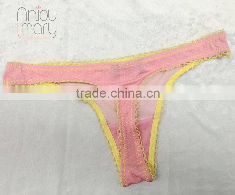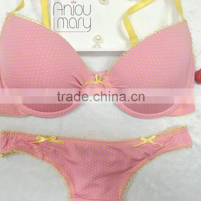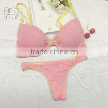 Lovely young ladies pink colour with prined breathable bra and panty set thong set