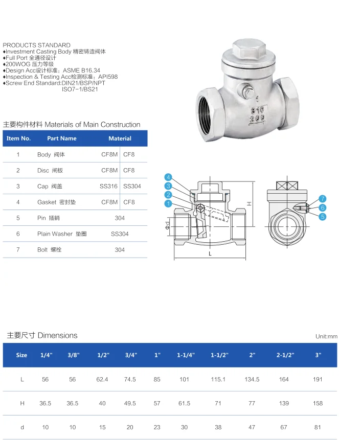 Home > Products > CHECK VALVE > RST Stainless Steel Automatic Threaded Pattern Swing Check Valve