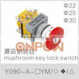 Y090-A-11YM Mushroom Key Lock Switch,KEY SWITCH,mushroom Switch With Key