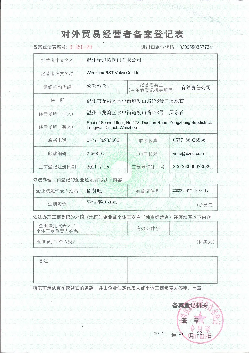 RST VALVE has obtained ISO9001, ISO14001, OHSAS18001, CE, TS and so on; and fulfilled the confirmation of standardized good system and metering examination system; and got the self-support right to import and export.