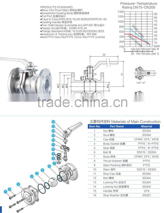 3PC Wenzhou Hot Water Floating Stainless Steel Flange Ball Valve