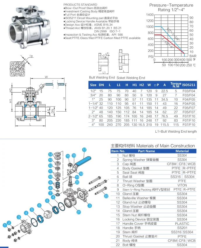 3PC SS Float Ball Valve With Direct Mounting Pad & Wenzhou CF8M 1000WOG Thread Valve