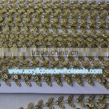 10 yard/lot 2cm leaf with clear crystal Rhinestone cup chain