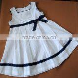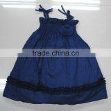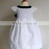 Hot Sales Sleeveless Cotton Linen Navy Bow Smocked Girl's Dress
