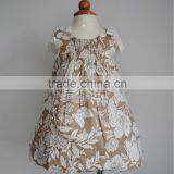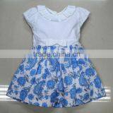 Hot Sales Pleated Collar Cap Sleeve Printed Girl's Dress
