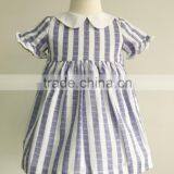 100% Woven Cotton Wholesale Blue Stripe Short Sleeves Dress