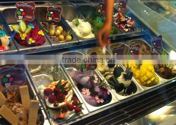 Ice cream display freezer back can by plastic curtain or Acrylic glass door