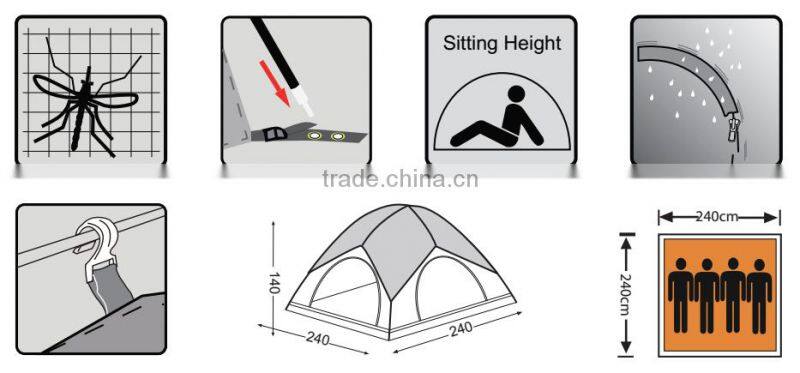 | Fabric: | 190T Polyester.PU Coating Waterproof 1000mm Taped seams on fly-sheet. | |