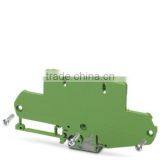 - Various side elements, e.g. designs with or without snap-on foot, with integrated PCB guides and/or PE contact to the DIN rail allow practical device design.