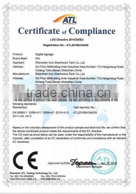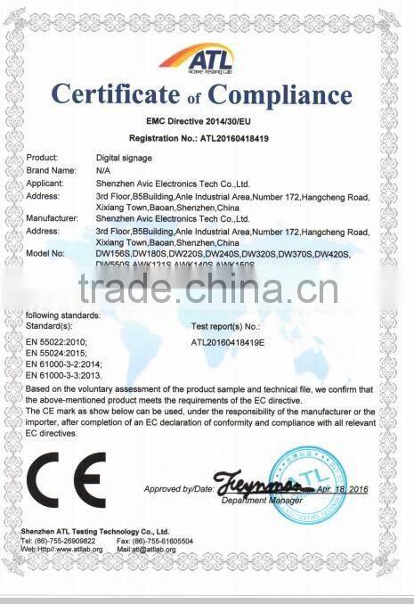 A: AVIC has multiple tests from material purchasing to finished products by different departments, like QA, QC, sales representative, to guarantee all signage players are in perfect condition before shipment. We also accept the inspection by the third party you appointed.
