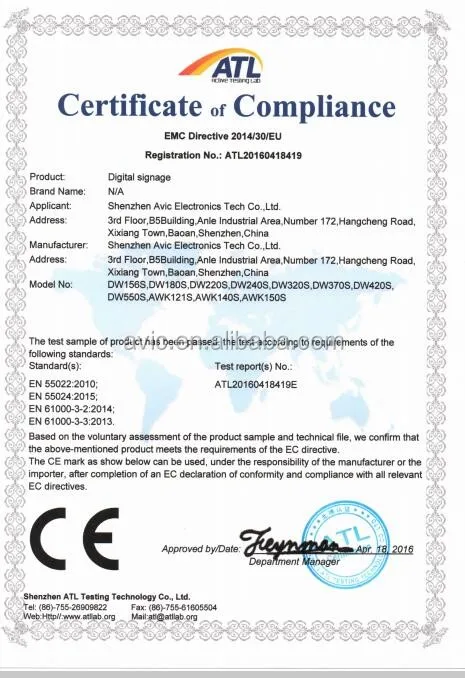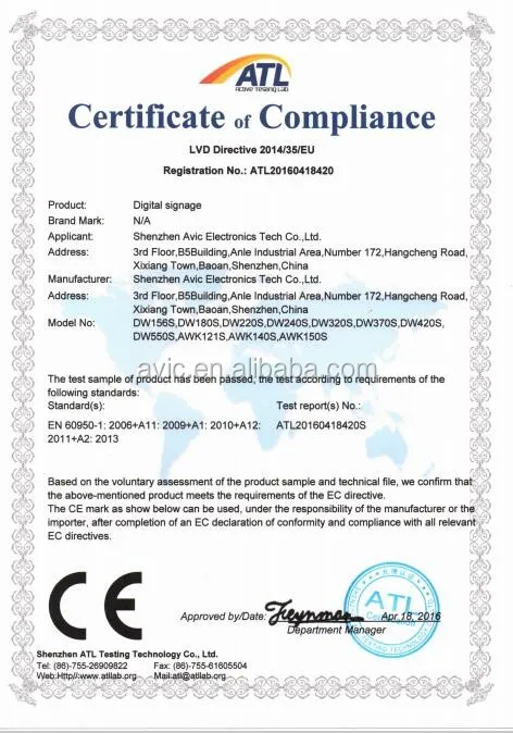 A: AVIC has multiple tests from material purchasing to finished products by different departments, like QA, QC, sales representative, to guarantee all signage players are in perfect condition before shipment. We also accept the inspection by the third party you appointed.