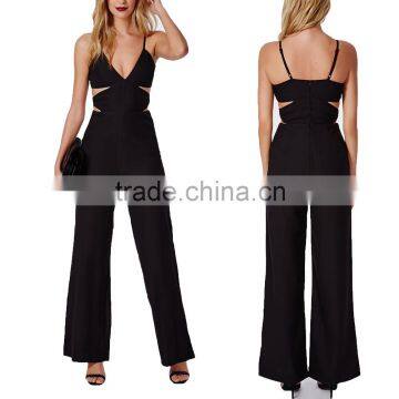 | Product Name | Trendy Top Sale Spaghetti strap v cut out bandage long black sexy jumpsuits for woman |
