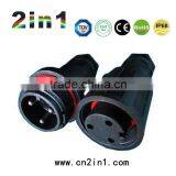 2 in 1 Technology Co,. Ltd which is a professional waterproof connector manufacturer in Shenzhen, China. Our main products covered waterproof plug, waterproof connector, waterproof power cable. Which is widely applied to LED Lights, Driving Power, Induction Controlled sanitary ware, Furniture, Urban outdoor lighting project, Mechanical , Environment Production , Building ,Boats and Ships.