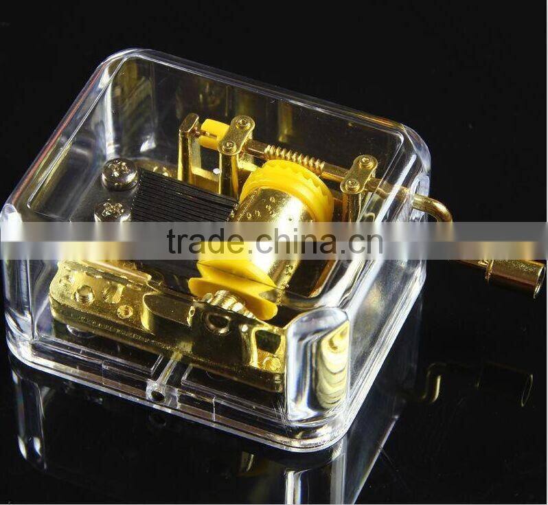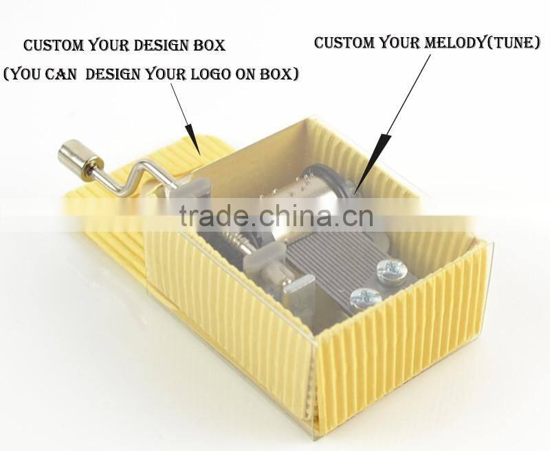 Full range of hand crank music box movements for you choice. The common crank operated music box mechanisms are all with 18 note barrel and comb which are made by our unique process and with good sound quality-Soft and clear. And this style Hand crank musical movements are with full metal handle, silvery color. More safety for baby and children. This model can be as hand crank music box parts fitting to all kinds of crank music boxes,Jack music boxes, Handcrank wooden box, DIY hand crank music box, cardboard music boxes, Rich songs for choice, Child songs - Baby mine, Be a clown, Children marching, Doggle in the window......Xmas songs - Amazing grace, anglels we have heard on high,AVE MARIA..., Baby songs and many Traditional songs