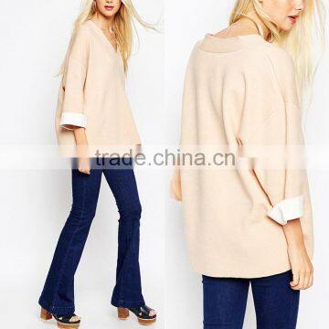 Plus size clothing tunic woman 3/4 wide sleeve v neck woolen lady blouse