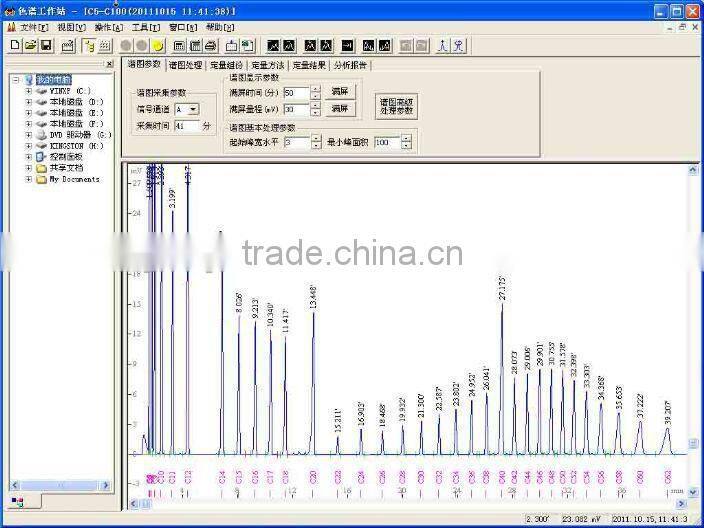3. Applicable boiling range: petroleum products or distillates of 55~680℃ boiling range distribution. On this chromatographic condition tested sample components can all show the peaks. It adopts area normalization
