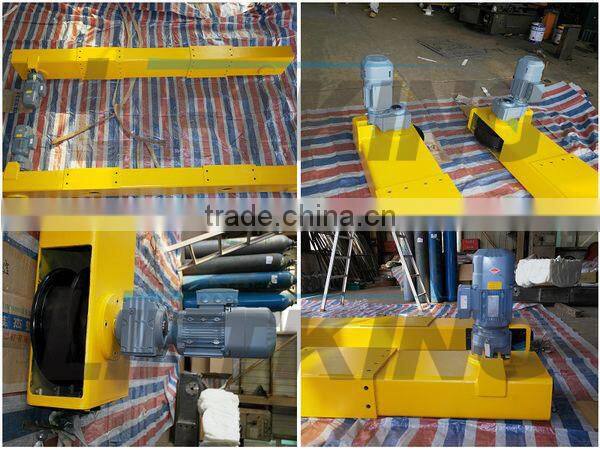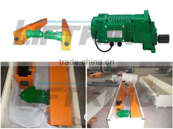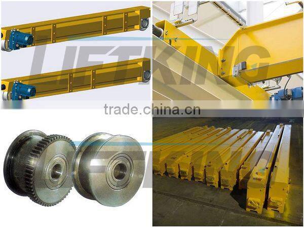 | Model | Capacity(T) | Span(m) | Power (kw) | Rail (kg) | Wheel Dia(mm) | Output Gear | Length (mm) | Traveling Speed(m/min) |