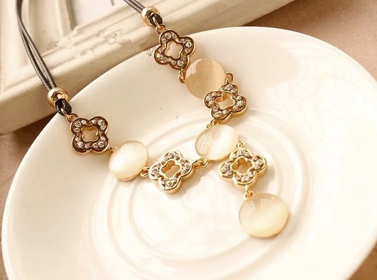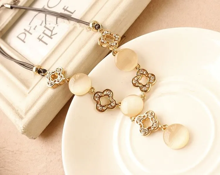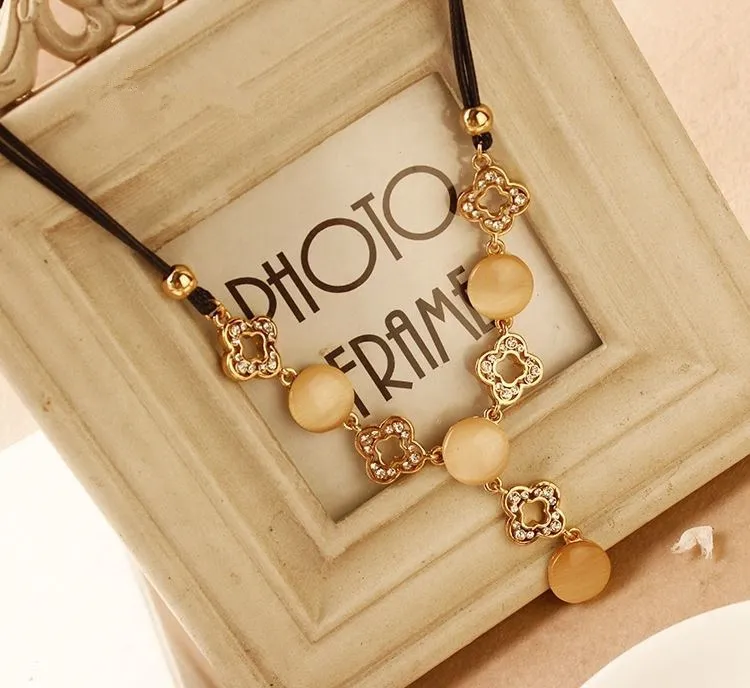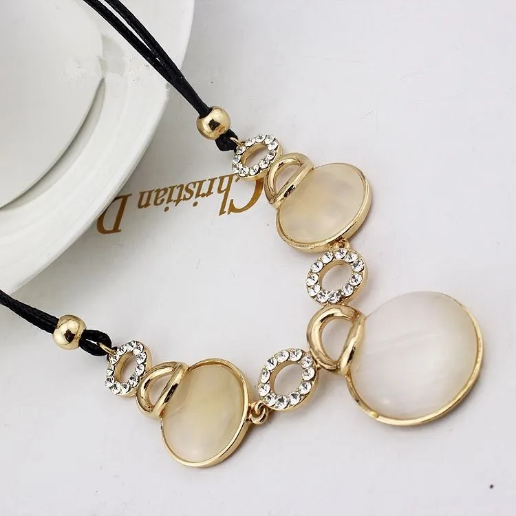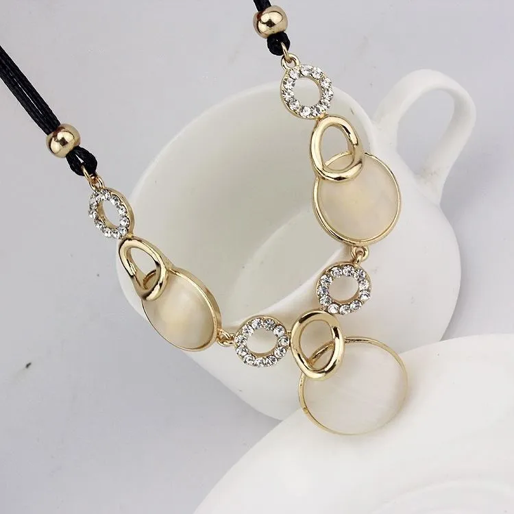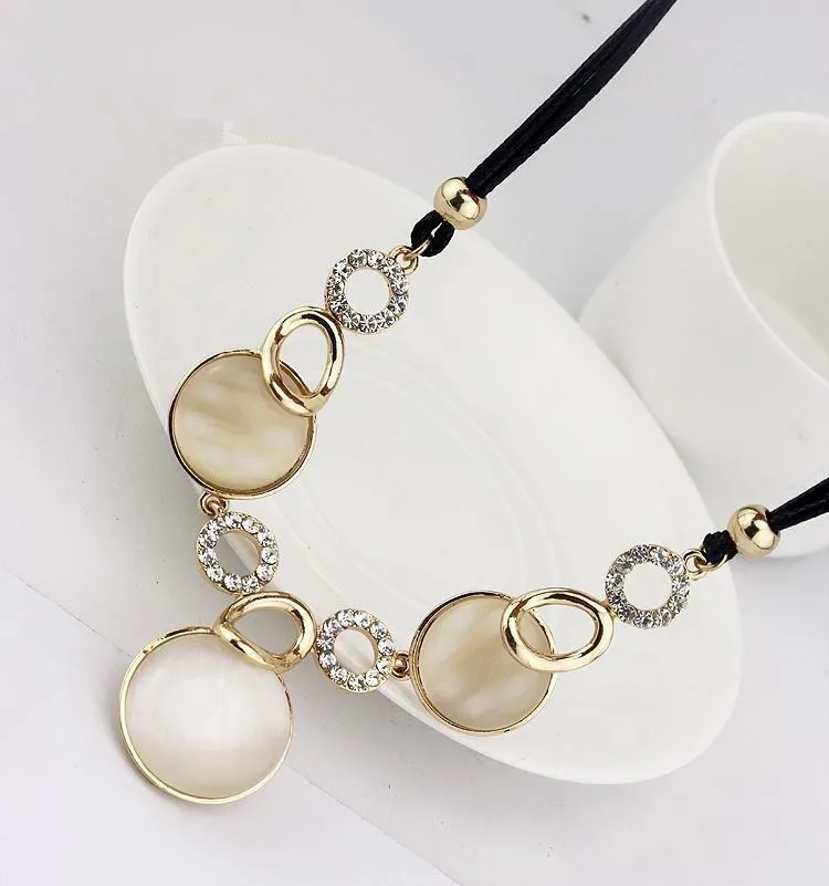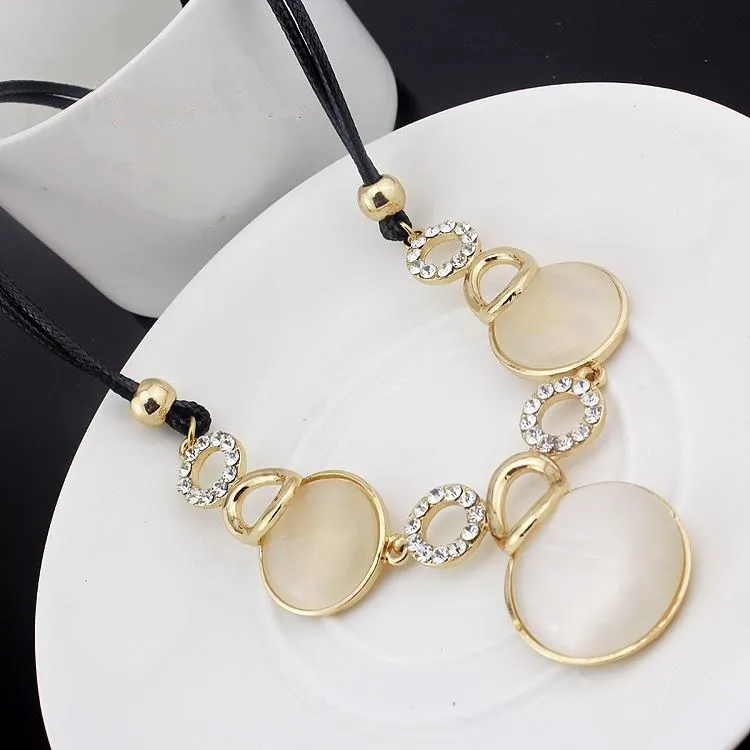 Home > Products > Leather necklace > Women Crystal Rounded Pendant Necklace With Crystals Good Gifts