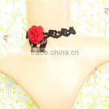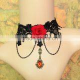 Handmade Red Flower Rose Bead Drop Pendant Black Lace Choker Short Necklace Lolita Gothic Vintage Party Cosply