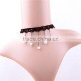Ethnic Gothic Artificial Pearl Lace Fashion Necklaces Statement Choker Necklace With Water Drop Pendant For Christmas Party