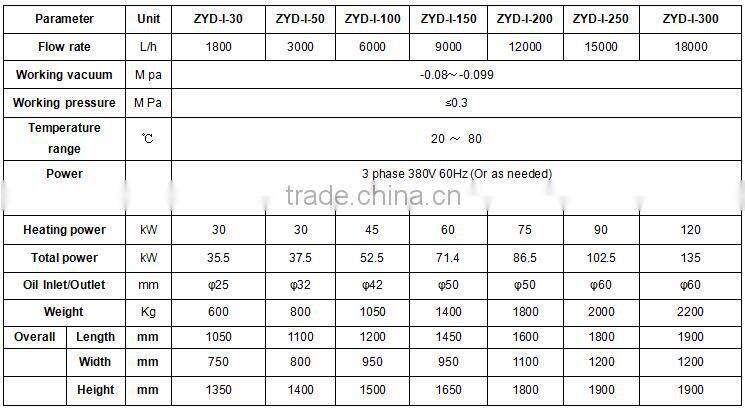 Drain up vacuum at 59~71m3/h pumping speed, create a tight vacuum state for oil purification quickly and have a 10 years guaranteed service life.