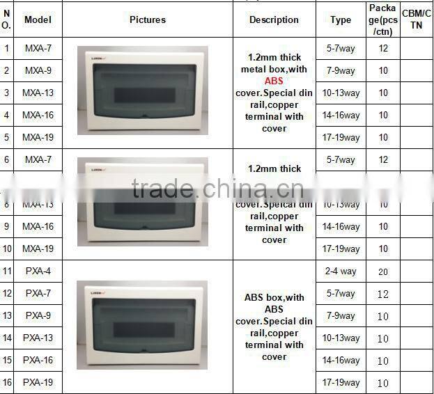 Types lid 7-10 way electrical distribution box with din rail and copper terminal