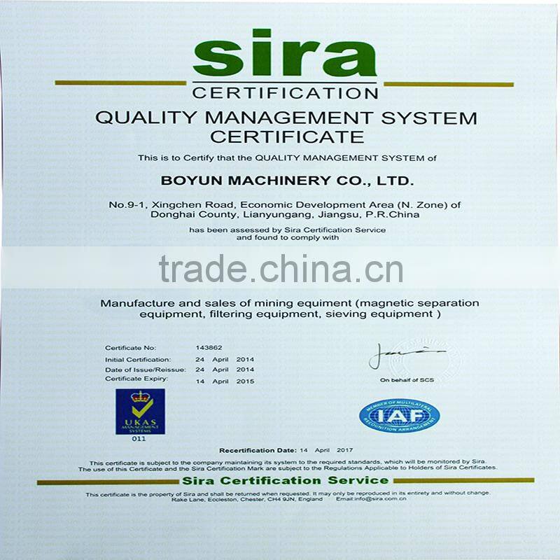 Lianyungang Boyun Machinery Co., Ltd. is a professional manufacturer of mineral machinery, specialized in the design, research & development, manufacture & sales. We have owned 60 products including feeding, cracked, transportation, ore grinding, classification, flotation, concentration, drilling & magnetic separation. Those are widely used in mines, drilling and engineering construction. Boyun is located in Donghai County, Lianyungang City. There are 10 engineers & 100 staff members more or less. Boyun pays much attention to product quality, and actively follows ISO9001 standards. We have many advanced performance test equipment and continuously make improvements to our quality assurance system. Quality service is considered as an important part of our product quality, and we honor our commitments we make before and after sales. We take seriously on every machine production so that we make sure it meets demand of our customers. Besides, we also can supply our customers mineral separation program design, mineral separation technological process design and standard & non-standard design. Donghai has beautiful scenery and beaches, convenient transportation that included harbors, an airport, railroads, and highways. Welcome friends all over the world to visit our factory.