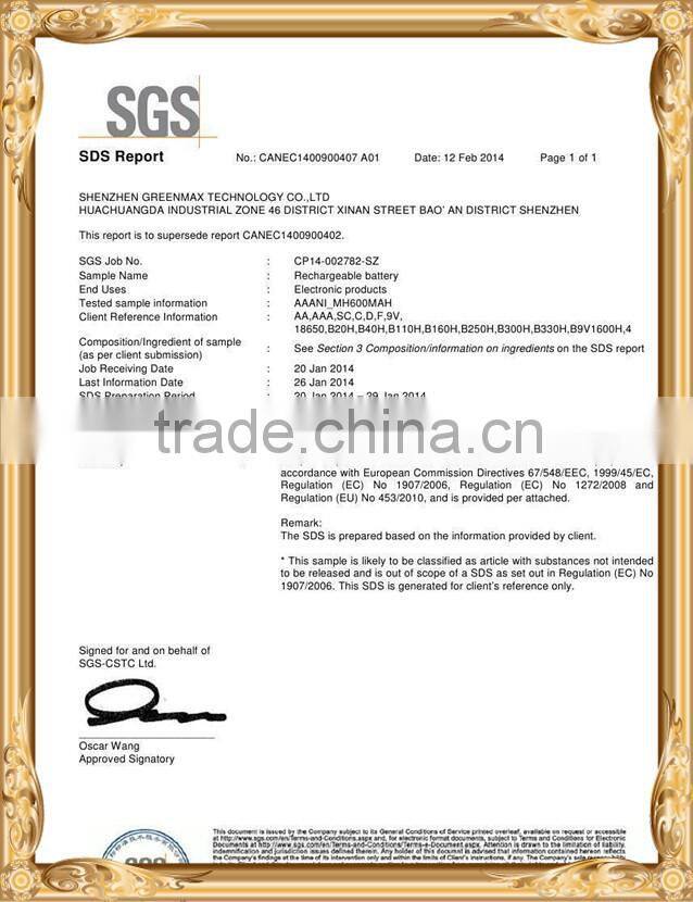 and our quality meets MSDS, CE, 2006/66/EC, UN38.3, CNAS and R.E.A.C.H. standard and the price is quite competitive compare with other suppliers in China. Greenmax also has established good partnerships with abroad enterprises on OEM/ODM projects, so we can help you to expand your market. Welcome to take samples to test, the samples are free; you just need pay the forwarder, more details please contact us in time.