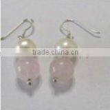 SILVER PEARL AND PINK STONE EARRINGS 16687