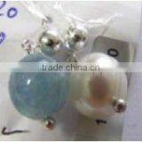 SILVER PEARL AND BLUE STONE EARRINGS 16657