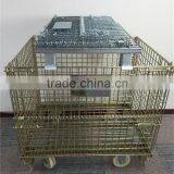 Wire Mesh Folding Wire Pallet Cage With Wheels
