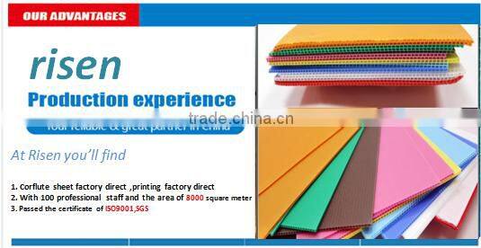 Shanghai Risen Plastic Products Co.,Ltd owns the largest corrugated plastic production base in Jiangsu, Zhejiang and Shanghai area. With complete specialized process equipments, we supply all types of corrugated plastic sheets, corrugated plastic packing box, corrugated plastic advertising board, corrugated plastic display, etc.