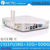 2015 High Quality C1037U Fanless PC 1.8GHz Speed INTEL Ivy Bridge With USB 3.0 2 RJ45 TF SD Card 8G RAM 64G SSD