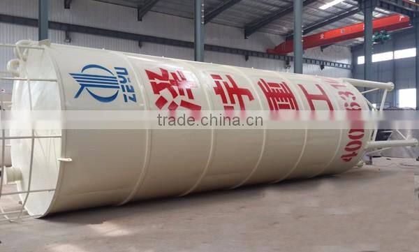 2) The cement silo is the cylindrical structure,four round legs support the bottom of the silo,the whole cement silo is the steel structure formed by welding, the dust collector and pressure safe valve is installed on top silo.